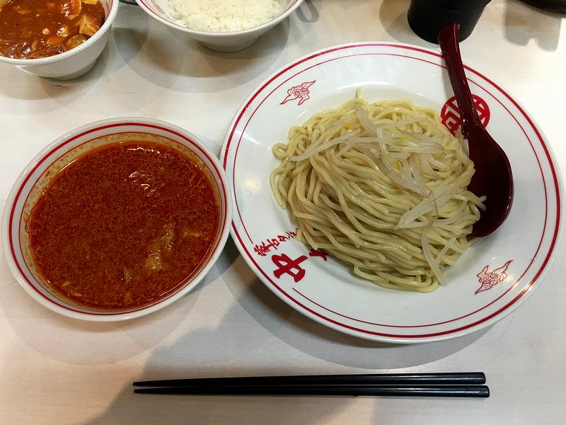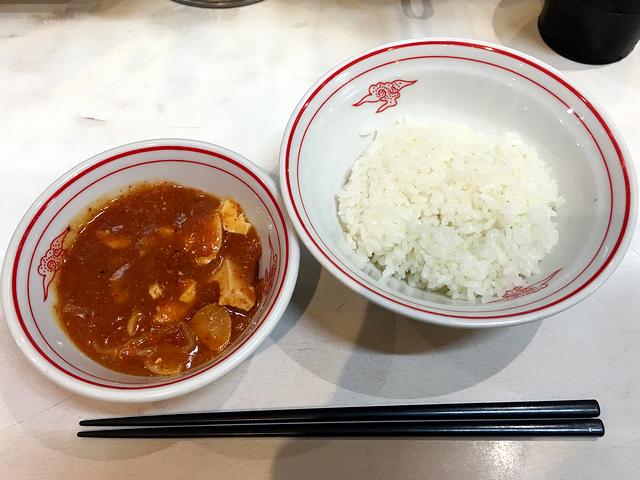 こちらは、一緒にいただいたもの。久しぶりの定食ですが、ちょっと辛い(4辛)蒙古麻婆とライスを別々にいただいたり、ライスに残った冷し味噌ラーメンのつけ汁を掛けたり、そこに麻婆を投入したりして堪能し尽くしました。