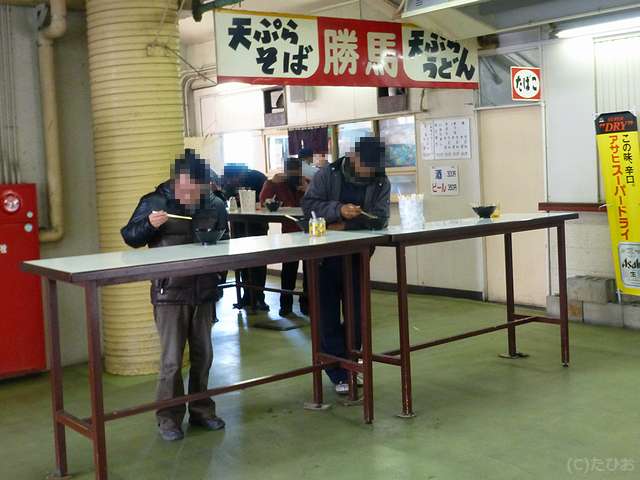 こちらは1階の立ち食いスタンド『勝馬』でいただいた物。個人的に競馬場に来ると、ソバやウドンの類が食べたくなってしまうもので。で、そのうどんですが、つゆは、出汁よりも醤油を先に感じる、昔ながらの立ち食いうどんのつゆという感じのお味。うどんは茹で麺で、特有の食感。(個心的には嫌いじゃないです。)ちなみにうどんではなくそばを注文すると、日本そばでは無く黄そば(いわゆる中華麺)になるのですね。具の天ぷらは、小エビがいくつかと衣という構成で、ふわりとした食感で、つゆとの馴染みも良い物。総じて、トラディショナルな立ち食いうどんという感じで、個人的には好みの味でした。