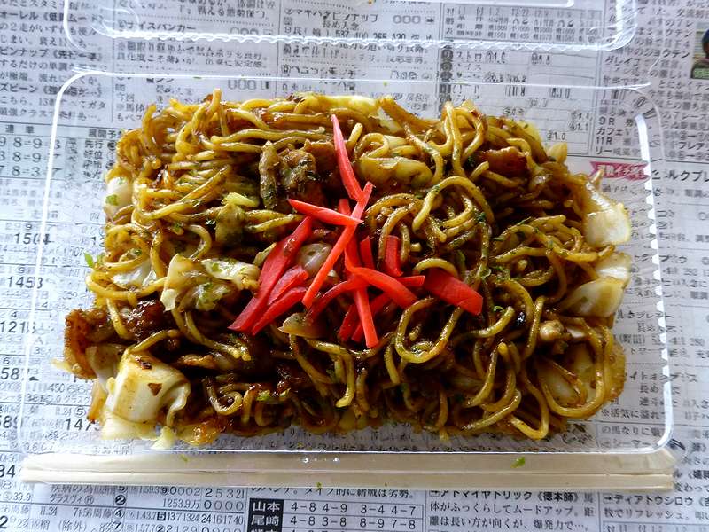 こちらは同行者がいただいた、『山本ショウテン』の焼きそば。これも結構有名なようですね。店頭に置いてあったのを購入したのですが、かなり熱々(特別観覧席まで持ち帰るのにちょっと難渋しました。)。で、少々味見させて貰ったのですが、甘味の効いたソースに、具として入っていた、揚げた背脂のコクが旨かったというか。あと、青のりが上に掛かっているのではなく混ざっていたのがちょっと珍しく感じました。