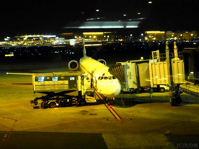 そして帰り道。来た時とは逆に国道2号から山陽自動車道と走ってレンタカーを返し、広島空港発午後7時40分の日本航空JL1614便に搭乗。ちなみにこの飛行機。使用機材は、間もなく引退となるMD-90型機でした。