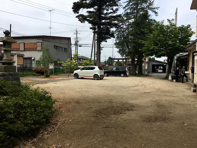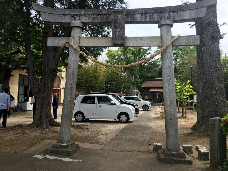 そんな下館城ですが、ゴールデンウイークも残り少なくなったこの日、相方が何年も前からやっている携帯の位置ゲーム「発見!ニッポン城めぐり」の関係でお伺いしてみることに。で、自宅から国道4号や408号、294号などを通って茨城県に突入。その後、カーナビの関係でもの凄くマニアックな道も通ったりしましたが、気が付くと国道50号との交差を過ぎて、城跡にある八幡神社に到着したのですが、境内では地元の方と筑西市の職員さんと思しき方が何やらなさっておられるようで。で、その方達に下館城を見に来たことを告げ、境内にクルマを止めて良いか尋ねたところ、快く了解していただけました。