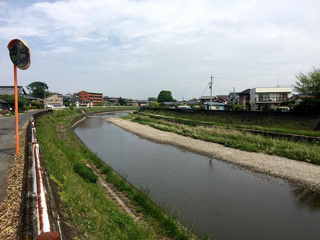その小径を降りると、水堀替わりに城の東側を守っていた五行(ごぎょう)川に突き当たります。ちなみにこの五行川。私の生まれ故郷というか栃木県内では五行川と呼ばれることが多い気がするのですが、茨城県内では勤行(ごんぎょう)川と呼ばれることもあるそうで、確かに、前述の「慶応3年下館城下町絵図」にもそう書かれていました。