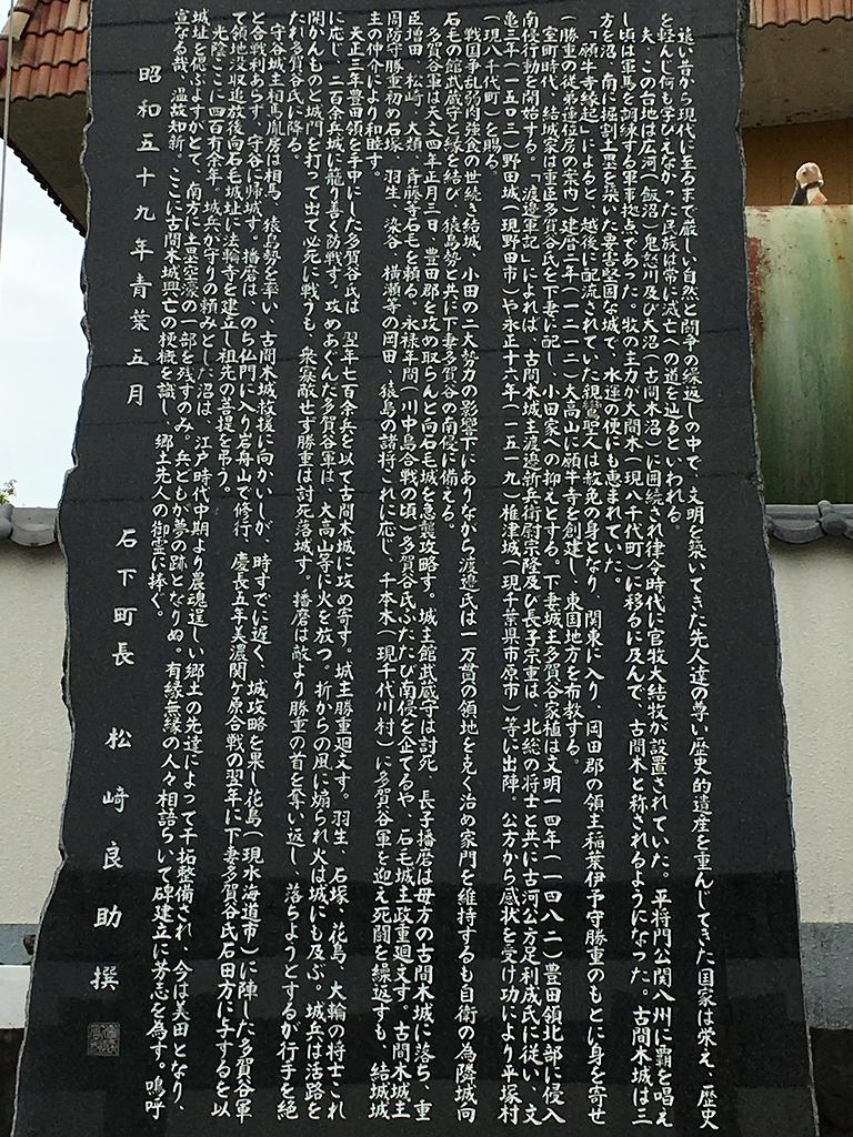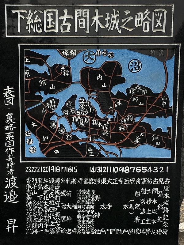 で、当地は、この辺りで争っていた結城氏、小田氏それぞれの勢力圏の間あたりに位置していたため、度々攻められていたのですが、天正3年(1575年)、前の記事で書いた豊田城を攻め落とした多賀谷氏は古間木城にも多勢をもって攻め、当時の城主渡邉元義は討死し落城。嫡男の勝重は多賀谷氏の配下となったそうで。ですが、多賀谷氏も関ヶ原の戦いの後に改易となり、渡邉氏は土着。城も廃城になったとのことです。