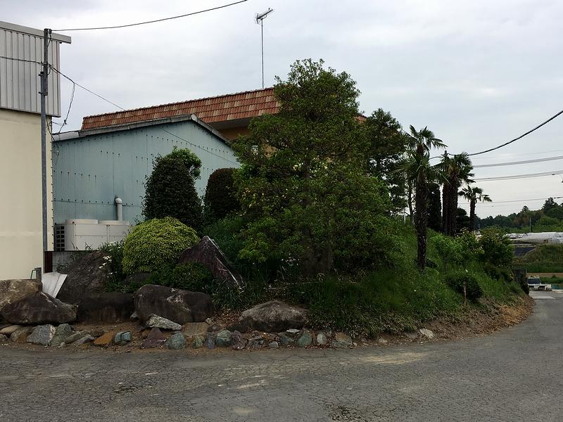 その後、土塁と濠が会社の敷地内に残っているとのことで、会社の方に見学の許可を貰おうと中へ。ちなみに、ゴールデンウイーク中にもかかわらず会社は操業されているようでした。で、従業員の方にその旨を話すと見学の許可はいただけたのですが、その方の話によれば、現在残っているのは入口付近の土塁跡だけのようでした。(かつては、会社敷地の奥の方にも土塁と濠があったようなのですが。)