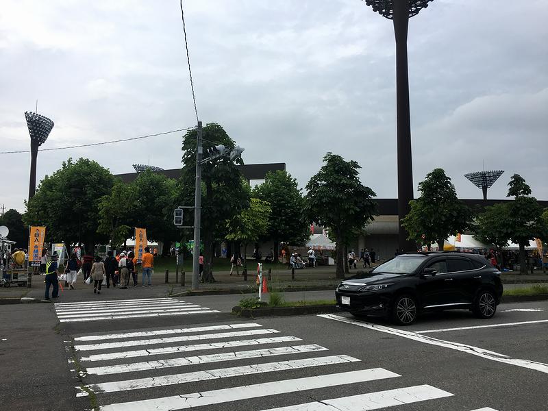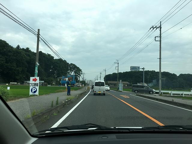 待ちに待った試合当日。どうせなら試合開始前から球場にいたかったので、この日は午後から休みを取っていました。それで午後3時頃、自宅を出発。で、宇都宮清原球場の駐車場ですが、プロ野球に限らず宇都宮清原球場に行った事がある人はご存じのとおり、現地にほとんど無く(当日は関係者のみ駐車可とのこと)、球場周辺の路側帯というかグリーンベルトが臨時の駐車場に。ですが、以前巨人戦に行った事がある人の話だと、グリーンベルトはかなり早い時間に一杯になってしまうとの事。なので今回は、鬼怒川河畔の道場宿緑地に設けられた臨時駐車場に直接向かう事にしました。