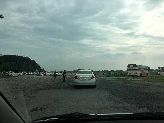 で、ここからシャトルバスに乗って、約10分で球場に到着。途中、球場近くのグリーンベルトはクルマで埋め尽くされていた感がありました。