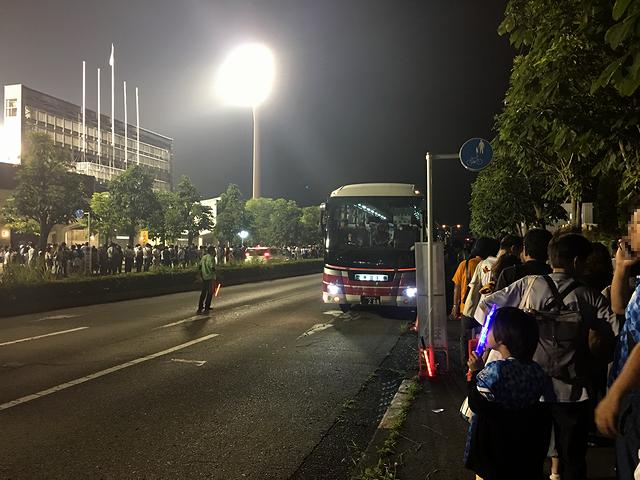 噂には聞いていましたが、帰りのシャトルバスの行列がハンパなかったというか。ヒーローインタビューまでしっかり観て、それから球場を出たのが午後8時45分頃。その後、まっすぐにシャトルバス乗り場(来る時に下車した所でした)に向かい、並ぶ事約1時間。バスに乗ったのが午後10時50分頃になってしまいました。お陰で途中、せっかくの酔いが醒めてきてしまたのは勿体なかったというか。