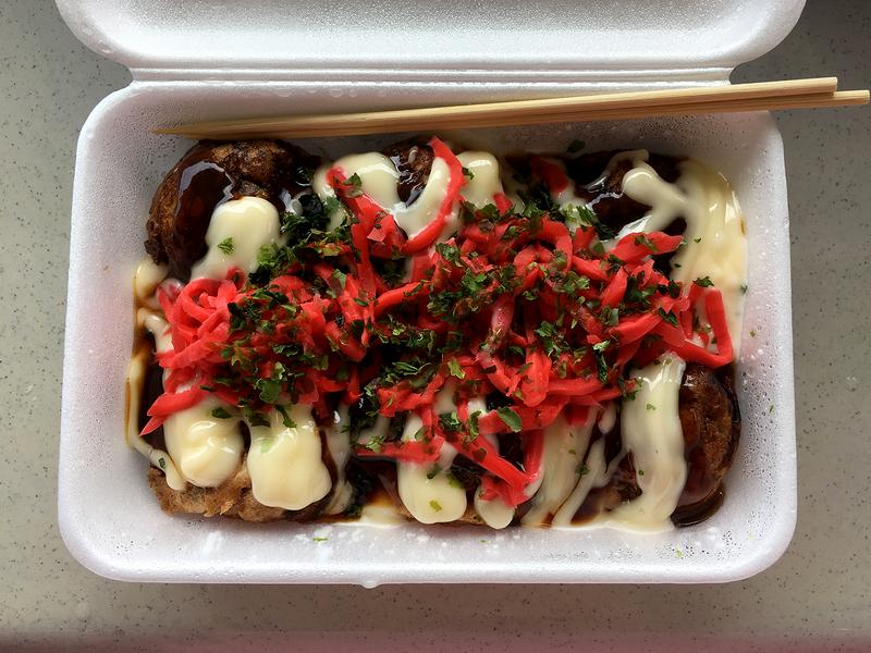 【紅しょうがぶっかけたこ焼き 500円(元祖会津ふわとろたこ焼き たこ福)】