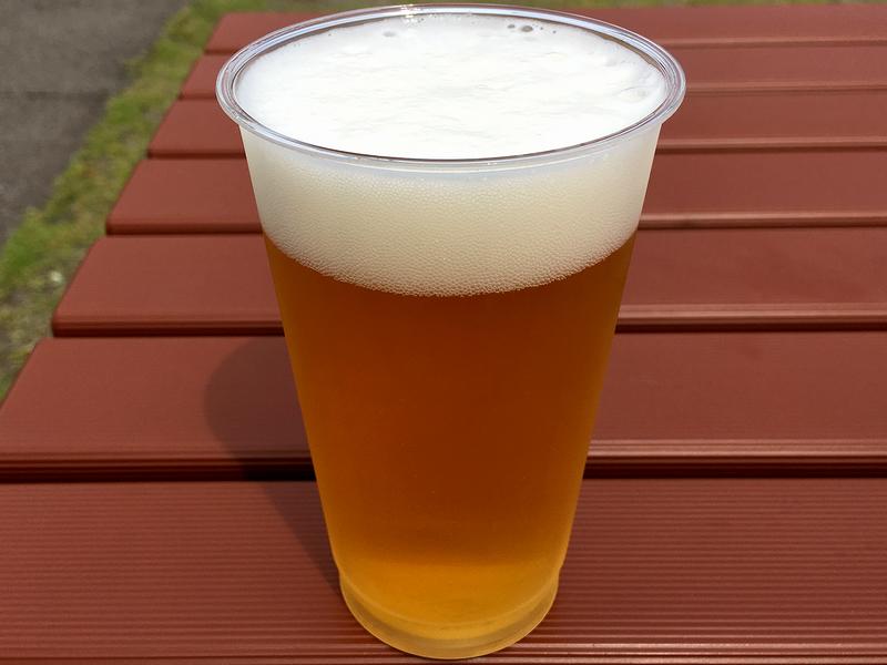 まずいただいたのは、個人的に今回一番の楽しみだったこちらの品。「1975年創業当時の味」とPOPに書いてあったのですが、このトミーフードさんが食堂で提供したのがはじまりだそうで。で、(写真だとよくわからないのですが、)ソース焼きそばの上に、挽肉の入ったカレールーがわりとたっぷりとかかっていて、これらのコンビネーションがまた!とてもわかりやすい美味しさですが、個人的には思いついた人を尊敬してしまいますね。ちなみにこちらは馬場内広場でいただいたのですが、一緒にいただいた後述する福島路ビールが進みすぎ、1杯じゃ済まなくなってしまったという。