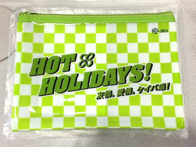 前回お伺いしたラジオNIKKEI賞当日はフリーパスの日だったのですが、その時に配布していたアンケートに答える(+当日購入未確定馬券100円分以上提示する)と参加できる抽選会が行われていました。で、折角なのでかなり長くなっていた行列に並んで参加したところ、参加賞的なオリジナルビニールポーチが貰えました。