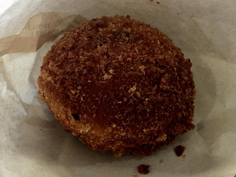 で、県北ウィークは何故か甘いものが多かったのですが、その中で「これは」と思ったのが、「人生が変わる揚げカレーパン」とPOPが貼ってあったこちらの品。店のお姉さんはサクサク感がポイント的な事をおっしゃっていたのですが、いただいてみたところ、油の嫌な感じが無く、ほんとその通りにサックサクです。また、中のカレーはペースト状で、「大辛」に使用されるハバネロ独特の匂いは抑えめに感じますが、辛さは結構HOT。でも、個人的には丁度いいというか、辛口のカレーパンはなかなか無いので、とても美味しくいただけました。