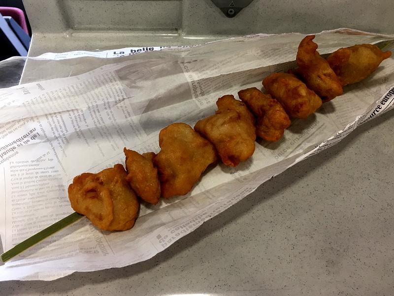 こちらのお店は、名前のとおりカレーがメインなのですが、今回は一段落後のつまみとしてこちらの品を購入。で、全長38cmと激ロングサイズのから揚げ串ですが、お肉は柔らかくてジューシー。もっとも個人的な好みだと、もう少しディープにフライにして欲しい気がしました。