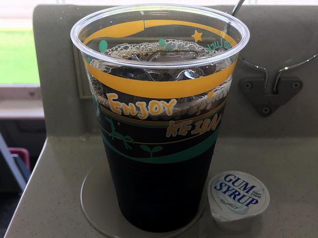 今回は5階のC指定席だったので、自席での飲み物はこちらのお世話に。で、今回ストイックにいっている時にいただいたのがこちらのアイスコーヒー。