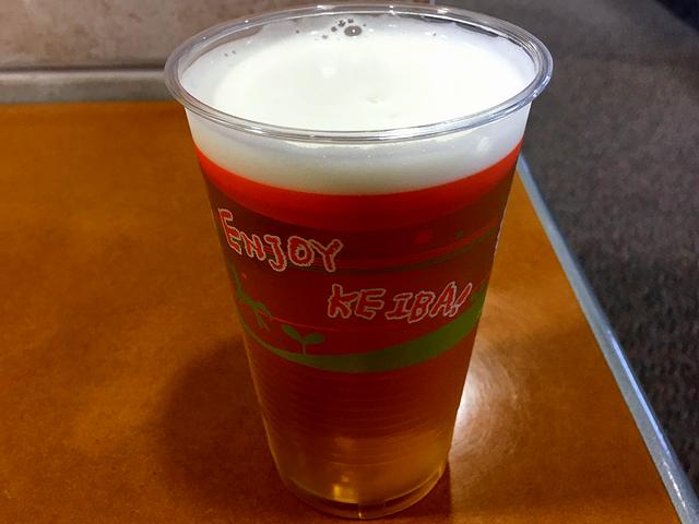 こちらは、馬券購入が一段落した後、真っ先にいただいた一杯。予想で疲れた脳みそに、リンゴのさわやかな甘酸っぱさが大変心地よく感じました。
