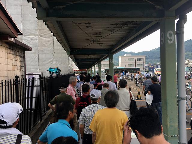 【臨時バス乗り場に並ぶ人たち】