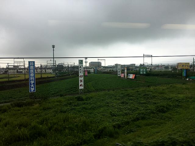 この後は、ビスタカーというより名阪乙特急乗車記になってしまうのですが、ざっと車窓と車内の様子を。車内は桑名(8:46着、8:47発)で乗客を若干増やした後、四日市(8:58着、8:59発)でほぼ満席に。これまで空いていた通路挟んだ隣の席には、お母さんと男の子、そしておばあちゃんの三人連れが座ったのですが、子供がすれ違う列車に反応して車内は更に賑やかに。そしてとうとう、白子(9:10着、9:11発)の手前で雨がポツポツと窓に当たるように。で、これまで車窓には住宅地が続いていましたが、このあたりから水田の比率が増えてきたよう気がしたものの、津(9:19着、9:21発)に近づくとまた住宅地に。でも、津を過ぎてちょっとすると一面の水田になったなぁと思ったてたら、伊勢中川の短絡線をゆっくりと通過。ここまでは名古屋線という路線を走ってきましたが、ここからは大阪線に入りました。