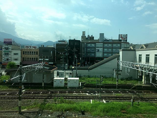 大阪線に入るとに車窓はわかに山がちに。また時たま現れる町並みも、平地の街ではなく山あいの街、そして山あいの集落に、という感じになっていき、トンネルをいくつもくぐりました。そんな中、伊賀上津(通過)を過ぎた頃でしゅうか、山の斜面に簡素な作りのお墓が。お墓というのは場所によって特徴が出るものですが、これは当地独特のものなんですかね。その後、わりと大きい街が現れた思ったら伊賀市(通過)。そしてヤマダ電機やマックバリュ、マルハン、スシローなど全国チェーンのお店が車窓に現れると名張(9:55着、9:56発)な到着。隣の席も、若い女性から年かさの女性へと替わりました。