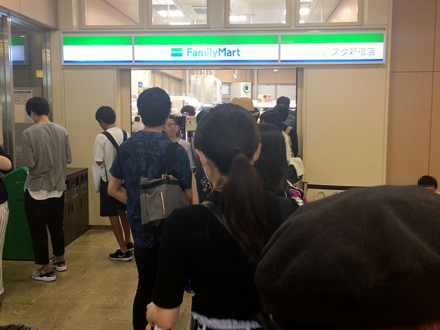 【コンビニ店内から伸びる行列】