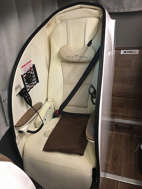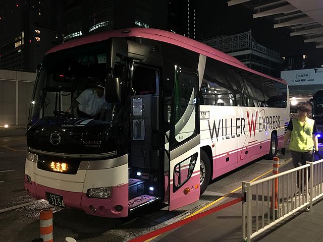 そうしているうち、発車時刻の約10分前に案内放送があったので、バス乗り場へと移動。今回乗車するバスは、21時50分発、ウィラーエクスプレスW231便。1列+2列の3列シートながら前後間隔がとても広く(前後は6列)、更には各席にパーティションの付いた最新鋭の「リボーン」車両で、ウィラーのバスといえばピンクの塗装というイメージなのですが、これは違う色なんですね。それで予約時、1列シート側で唯一残っていた最後部の席が今夜の宿となります。で、乗車後、まずは荷物を荷物棚に置こうとしたところ、コクーンの車両では問題なかったのですが、こちらのは天地幅が狭く置けないという事態。これは事前の確認不足なので仕方が無いのですが、最後部だったことが幸いして、貴重品以外はシートの後ろに置いてしまうことに。その後席に落ち着き、現在ウィラーエクスプレスのフラッグシップとなっているリボーンの乗り心地を堪能。シートの横幅に余裕があり、リクライニングはコクーン以上に倒れ、レッグレストを起こしてフットレストに足を入れてしまえば、かなり寝そべっている感覚ですね。ただ、プライバシー感はコクーンの方が上に感じ、またシートが広い分シート回りにちょっとした物を置くスペースが無い(ドリンクホルダーと小さな網ポケットのみ)のと、パーティションに引っかけるように置いてあるシートのリモコンが道路の段差で派手に音を立てるのも微妙だったのですが、それでも、一般的な夜行バスに比べれば非常に快適なことに変わりは無く、残しておいた非常用のウイスキーポケット瓶を取り出し、ちびちび飲みながらこれまでの旅を振り返り。約1時間後に到着した名神高速草津パーキングエリアでトイレを済ませたところまでは覚えているのですが、その後は何時しか眠りについていました。
