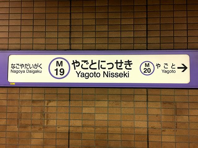 【八事日赤駅の駅名標】