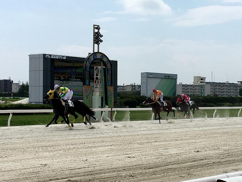 次の目的地は、今回の旅のメインと言うべき名古屋競馬場。八事日赤駅から先程と逆のルートでいったん名駅に戻り、あおなみ線に乗り換えて名古屋競馬場前駅で下車。そこから歩いて10時30分頃に到着したのですが、既に入場が開始されているようでした。で、入口近くの売店で競馬新聞を購入後、個人的に三度目となる名古屋競馬場に入場し、第1レースから最終レースまで勝負。結果、的中すれども儲からないという駄目なスパイラルに陥ったあげく、広域場外発売の門別(北海道)や園田(兵庫)にまで手を出し更に傷口を広げるというなんとも残念な結果に終わったのですが、明日の軍資金を残さなくてはならないので、金額的にはそれほど負けなかったのが救いという。それと、初めて利用した金シャチプレミアムラウンジは、なかなかの居心地だったのですが、構造上コースが直接見えないのは、折角競馬場に来ているのに勿体ないな、と。加えて、先程の喫茶マウンテンでガッツリいただいてしまったのと、早朝は曇っていたもののその後晴れ間が広がってやたらと暑くなったのが効いてきしめんと串ものを少しだけと、昨年にお伺いした時と同じく競馬場グルメを沢山いただけなかったのは心残りでした。(ここも、近いうちにまた来なくてはなりませんね。)