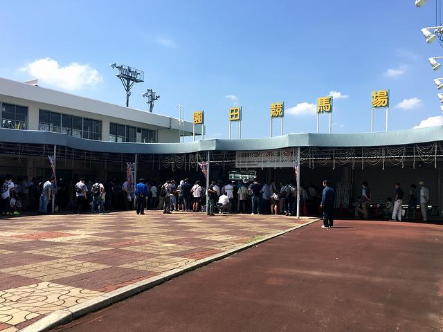 昼食をいただいても時間は未だ午前11時15分頃。上本町駅から阪急の梅田駅までは20分程。梅田駅から園田競馬場最寄りの園田駅までは10分もかからなかったかと。そして、園田駅から園田競馬場への無料送迎バスの時刻は、競馬場のウェブサイトによると午後1時45分から。というわけで、このまままっすぐ園田に向かっても時間が余ると思い、その時間を利用し、上本町から乗り換えなしで行ける神戸三宮駅まで行って、土産物を買うことに。先程の近鉄ビスタカーで久しぶりに「乗り鉄」の血が騒ぎもう少しばかり鉄分補給がしたくなったのに加えて、神戸まで行けばお店も多いだろうし、出来れば宅急便で送りたいという希望もあってそうしようと思ったのですが、これが結果的には失敗でした。まず、上本町駅から乗車した11時30分発の阪神電鉄神戸三宮行き快速急行が、非常に混雑。ロングシートの席には座れたものの、程なくして目の前には人がずらっと立ち並び、気分的に鉄分補給もままならない状態に。なので尼崎駅で列車を降り、接続する11時48分発の山陽電鉄姫路行き直通特急に乗り換えたのですが、この列車も結構な混雑。途中からクロスシートの席には座れたものの、外の景色を楽しむことはできませんでした。と、鉄分補給どころか若干やられ気味に神戸三宮駅に到着後、土産物に関しては、ものすごく品揃えが豊富なJR駅構内のコンビニで買うことが出来、宅配も頼めたのは良かったのですが、その後、ここまでの道中でライトニングケーブルを落とした事に気がつき、再び先程のコンビニへ。更には、阪急電鉄の神戸三宮駅の駅舎が工事中で入口がなかなか見つからず、暑い中を余計に歩くはめになり、時間と体力を余計に使ってしまいました。それでも、園田駅には午後1時半前に到着。昨年訪問した時と同様、無料送迎バスはウェブサイトに書いてあった時刻より早く動き出しているようで、丁度停まっていたバスに乗車。13時30分にバスは発車し、程なくして園田競馬場に到着したのですが、なんと、あてにしていた特別観覧席は、この時点で完売となっていました。園田競馬場にはこれまで何度かお伺いしていて、特別観覧席は毎回確保することが出来ていたので安心していたのですが、考えてみれば今日は祝日だし、更には現在スタンドの耐震化工事を行っている関係で席数が減り料金が半額になっているのも大いに関係していたと思われ。ほんと、やってしまいました。(個人的に、予想にパソコン使う関係で落ち着ける場所が欲しいのと、一般席に新聞などを置いての席取りは好きじゃないので、途中で気兼ねなく離席できる特別観覧席は是非とも確保したかったところなんですよね。)