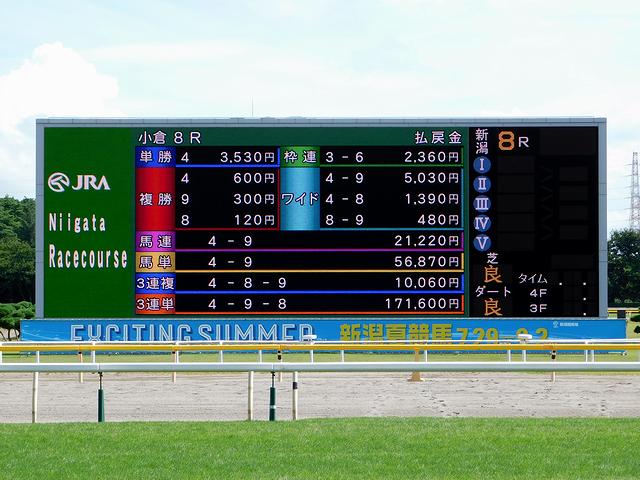 というわけで今回の新潟競馬場。試し撮りがメインということで、この日だけで500コマ以上撮影してきたのですが、ブログ用という目的には十分な性能を持っていることは確認できました。あとは、オートフォーカスの設定を詰めたり、他のクセをつかんだりしてそれなりに使えるように早くなりたいですね。あともちろん、その合間には(折角なので)馬券も購入したのですが、写真に夢中になっていると(加えて何かしら食べまくっていると)馬券をちゃんと予想して買うのは難しいという当たり前の結論に。なので真面目に勝負したのは、時間に余裕の出来た後半戦以降となったのですが、これが何とも悔しい結果となりました。新潟は買ったレースのうち、ほとんどを的中させることが出来たものの、札幌と小倉がひどすぎたというか、馬券購入でしくじり過ぎて爆散。たとえば、札幌記念は勝ったサクラアンプルールに重い印を打っていたものの、何故か単複勝負にこだわってしかも別の馬で勝負してしまい撃沈。更に小倉の最終なんて、印打った馬をボックスで買おうと思ったものの、マークカードを間違えて一度返却となり、その時「自信ないしどうせ外れるだろうから」などと日和って購入をやめてしまったため高配当を逃すというマヌケぶりだったという。ちゃんと勝負したレース数が少ないので思ったよりもお金は減らなかったのですが、何というか、この夏も色々駄目なまま終わりそうという感じです。(競馬場での収支だけで見れば、7月8月は5戦全敗だもんなぁ…。)