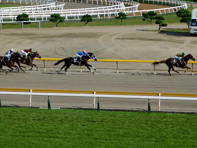 この日のレースは芝が7レース(うち1レースが直線1000m)、ダートが4レース、障害が1レースという編成でした。で、さすがに芝外回りコースの最終コーナーや直線1000mのスタート地点は無理だったものの、芝内回りコースやダートコースの最終コーナーは余裕で撮影することができました。ただ、オートフォーカスの設定を詰めていないというかクセが判っていないお陰で、結構な確率でピントが甘いというか、別のものに合っちゃったという。(特に第12レースは、プレビュー画面で見た時は、会心の出来だと思ったんですが、外ラチにバッチリ合ってました。)
