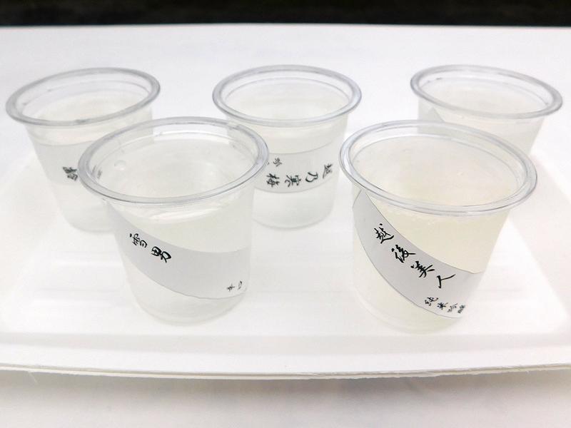 12銘柄(お伺いした時、そのうち1銘柄は品切れでした)のお酒がどれでも1杯500円でいただける他、その中から思い思いの銘柄を飲み比べできるセットも三種500円、五種800円と大変お得感のある値付けで販売中でした。で、個人的に日本酒は好きなので、五種の飲み比べセットを。ちなみにチョイスした銘柄は、『お福正宗 純米吟醸』、『越乃寒梅 吟醸 特撰』、『越後美人 純米吟醸』、『鶴齢 芳醇』、『雪男 辛口』で、個人的には越乃寒梅以外は飲んだことがないという。それで(一々メモを取っていなかったこともあり)それぞれの特徴までは省きますが、全部違って全部良かったです。