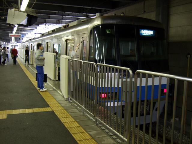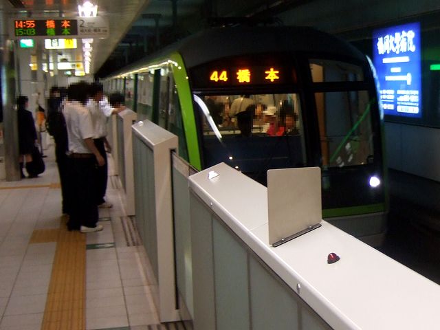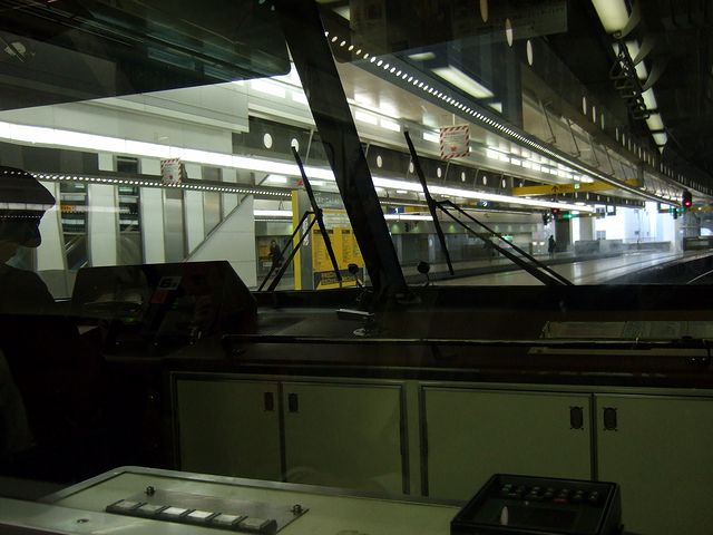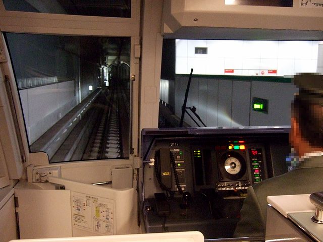 地下鉄の薬院駅に降り、早速やって来た橋本行きの列車に乗車。車両は七隈線専用形式である3000形で、前述のとおり鉄輪式リニアモーターカー。従来の車両より車体断面が小さく、可愛らしい感じがしますね。早速乗り込むと、1人分づつ分割され背もたれがちゃんとした高さなのが珍しいロングシートが両脇に並ぶ車内には、中吊り広告がなく、替わりに液晶やLEDを使った様々なディスプレイが賑やかですね。席はほとんど埋まっていてドア付近には立ち客も出てましたが、運転台直後のスペースが空いていたのでそこに立つ事に。で、発車の際、運転手さんがマスコンやブレーキをいじらなかったのに驚いたのですが、後で調べたところ、運転は自動列車運転装置(ATO)が行い、ドア開閉、旅客への案内補助、そして緊急時の保安・運転要員として運転士が乗務されているとの事。発車した後は、その後ろでずっと前方を見ていたのですが、さすがに急勾配・旧カープが可能な鉄輪式リニアモーターカーだけあって、大げさに言うとジェットコースターのような感覚。っていうか、明らかに従来型の鉄道とは違う景色で、それを堪能しているうちに終点の橋本駅に到着。薬院駅発車時点で結構混んでいた車内は、いつしかガラガラになっていました。