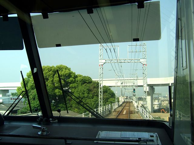 やがて発車時刻となり、ほぼ満席の乗客を乗せ発車。最初の停車駅である隣の薬院駅まではゆっくりと走りますが、その先はまさにかっ飛ばすという感じでスピードアップ。ちなみに、西鉄の特急列車の最高速度は110km/hだそうです。それにしても、席が車端部の為か、かなり横揺れが凄いですね。やがて、高架から地上に降り、車窓もだんだんと郊外という感じがしてきて西鉄二日市駅に停車。西鉄福岡駅を出てから10分ちょっとなのですが、ここは降りる客よりも乗る客の方が多く、通路に結構立客が出ました。西鉄二日市駅を発車するとまたかっ飛ばして、再び高架になったと思ったら西鉄久留米駅に到着。西鉄福岡駅を出てから約30分で、ここからは、降りる客の方が乗る客より多くなってくるようです。そして西鉄久留米駅を出ると、すぐに花畑駅に停車。この隣の試験場前駅(通過)を過ぎると単線になり、その先の九州新幹線高架の下を通って再び地上へ降り、大善寺駅に到着。そしてここから再び線路が複線になり、蒲池駅を通過すると再び単線になったりして、柳川駅に到着。ここで車内が若干空きました。柳川駅を出ると左手に車両基地(柳川車両基地)見て進み、開駅から再び複線になり、西鉄銀水駅(通過)付近から左手にJRの鹿児島本線が寄り添って、終点の大牟田駅へ到着。西鉄福岡駅からの74.8kmを1時間3分で走破しました。