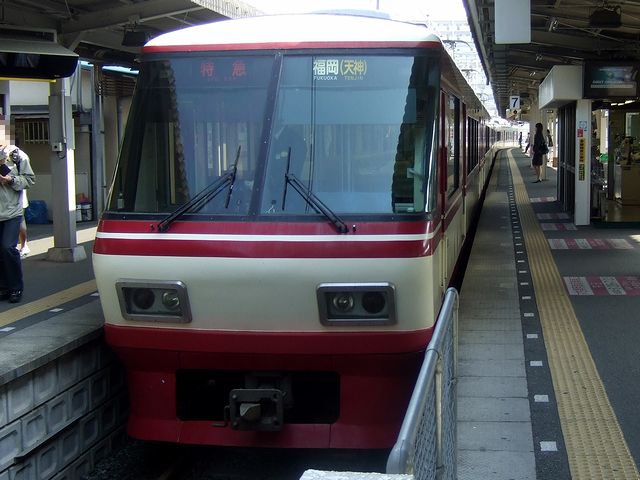地下鉄の天神駅から西鉄福岡(天神)駅へは以前1度乗り換えたことがあるのですが、「こんなに離れていたっけ?」という感じ。もっとも、実際には5分もかからず西鉄福岡(天神)駅に着き、大牟田までの乗車券を購入後、私鉄のターミナル駅らしい頭端式のホームの根元にある改札口を通って特急の乗車位置に向かいました。