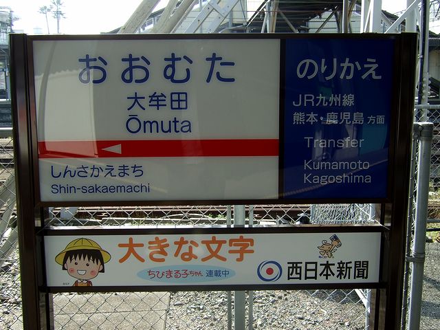 【西鉄大牟田駅の駅名標】