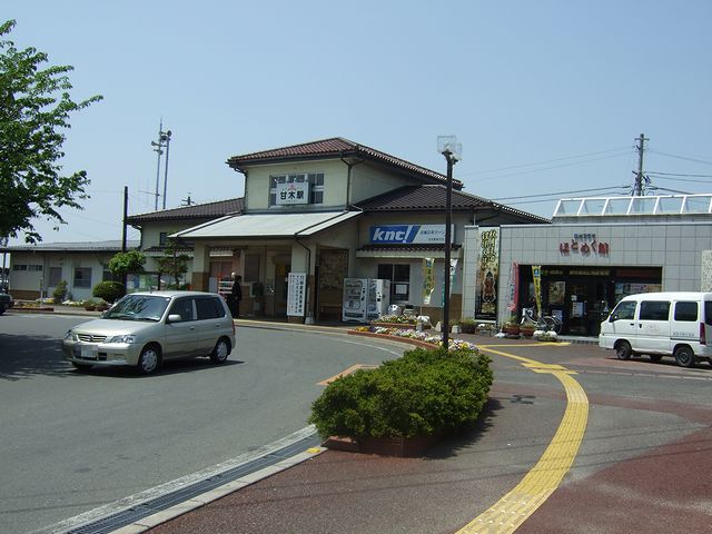 西鉄久留米駅を出た列車は、となりの櫛原駅を挟んで甘木線との分岐駅である宮の陣駅へ。駅に入る前に既に線路は分岐していて、宮の陣駅の甘木線用ホームは、結構なカーブ上にある感じです。急行列車の接続待ちで若干遅れて宮の陣駅を出た列車は、何か由緒がありそうな五郎丸駅、目の前に宮ノ陣小学校がある学校前駅と停車すると、車窓は徐々に田園が増えだしてローカル線の趣に。また、もともとはこの西鉄甘木線が軌道線だった名残か、急カーブや線路ギリギリまで樹木が生えていたりするなど、結構スリリングな箇所もあったりします。乗客はお年寄りが多く、西鉄久留米駅から乗ってきたお婆さんが盛んに咳き込んでいるのですが、そのお婆さんが古賀茶屋駅で下車し、次の北野駅で対向列車と交換。途中の金島駅では正午のサイレンを聴き、ホームがかなり狭い本郷駅で再び対向列車と交換するのですが、西鉄では交換の事を「離合」と案内するのですね。そして、外はいつしか田んぼばかりとなり、その向こうから低い山が近づいてきたと思ったら、終点の甘木駅に到着。宮の陣駅を出てから30分少々の道程でした。