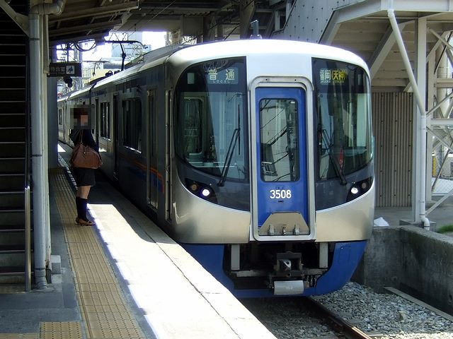 今度乗るこの313形は、先程の600形よりさらに古い昭和27年製で、宮地岳線転入は昭和52年。その後ワンマン化・車体更新、冷房化改造、制御器・台車取替及び駆動方式変更(吊り掛け→カルダン)などを受け、現在も残るは1編成だけになったとはいえ頑張っています。また、この形式は鉄道技術研究所の全面的なバックアップにより普通鋼ながら日本で初めてモノコック構造を指向して設計されたもので、その為登場時には加重試験など多くのテストによりデータが残され、その後登場した東急5000形、国鉄90系(後の101系)・20系(後の151系)などの礎になっていたというのは、乗った後で知りました。で、その313形電車に乗り込み、日の傾いた中を帰途に。幾分くたびれた車内は夕方の混雑前のけだるい感じが漂い、駅ごとに徐々に乗客を増やしつつ、和白付近でちらっと海を見たり、高架線を走ったり、千早駅発車後ほぼ同時に発車した併走するJR鹿児島本線の電車を一瞬だけ抜いたりして貝塚駅へ到着しました。