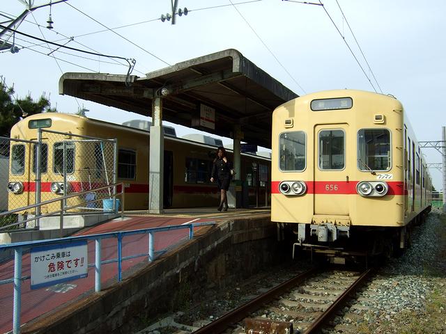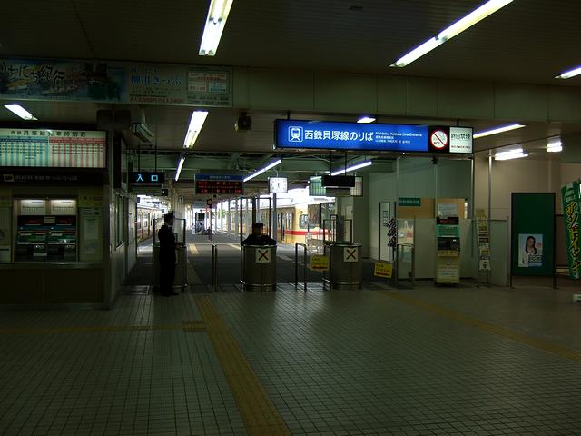 貝塚駅では、結構多くの乗客が西鉄貝塚線に乗り継ぐようでした。ちなみに、乗り換えに階段は無く、途中に双方の改札口があるだけ。しかも、接続時間も短く取られているので、乗り換え用の切符を持っていればスムースに乗り継げるのですが、こちらはこちらで初めての乗り換えに加え、地下鉄が一日乗車券のため西鉄用の切符を購入する必要があり、ちょっと焦りました。で、これから乗る西鉄貝塚線は、以前は宮地岳線と言い、その区間も現在の終着駅である西鉄新宮駅より先の津屋崎駅まであったそう(平成19年4月1日に西鉄新宮-津屋崎廃止)です。また、西鉄の中ではこの貝塚線だけ軌間が1,067mmの狭軌(他は1,435mmの標準軌)だったり、他のどの西鉄線とも接しておらず独立しているなど異色の存在となっています。