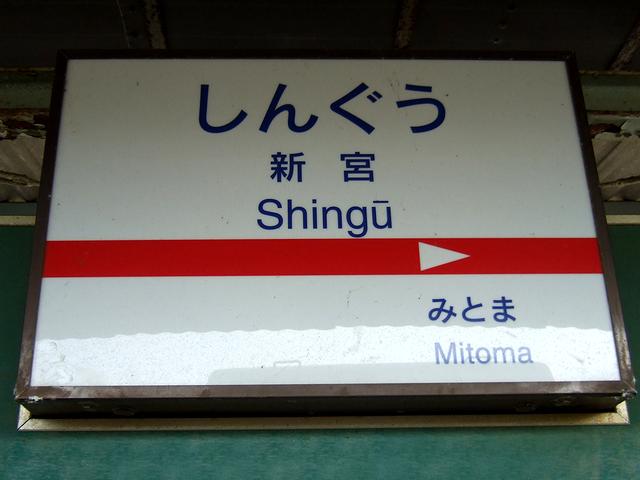 【西鉄新宮駅の駅名標】