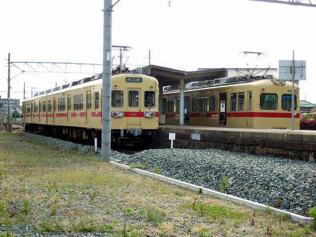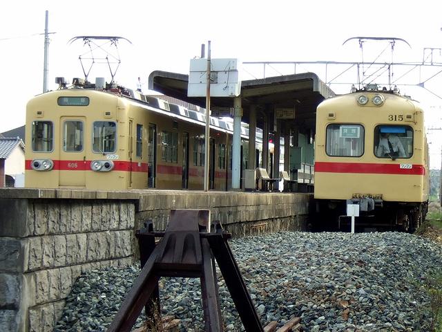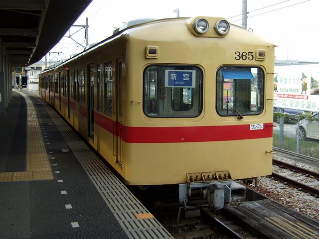 西鉄新宮駅に到着した後は、残った僅かな乗客と共に下車。このうち何人かが、平成19年に廃止となった区間を走る代替バスに乗り換えていきました、で、こちらはというと、折り返しの列車で帰っても良かったのですが、実は、貝塚駅を出てから最初に交換した列車が、西鉄で最も古い電車である313形だったので、そのまま折り返して運転してくれればそれに乗って帰れるかなと思い、しばらく待つことに。ここまで来ると帰りの飛行機の時間までちょっと余裕があることも判りましたので。というわけで、一度改札口を出てから待つこと暫し。お目当ての313形電車がやってきてくれました。
