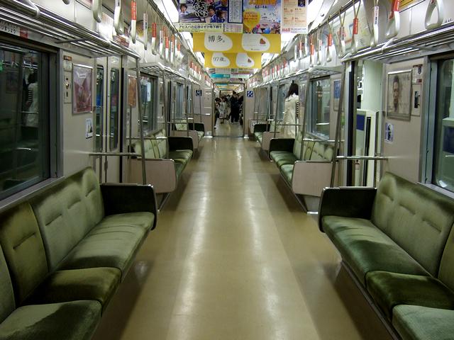 先程の折り返しとなる列車に乗車。先程と反対側の先頭車両に乗りました。今度はおとなしく席に座る事にしたのですが、何ともスムースな感じ乗り心地が良いですね。もっとも鉄道車両の乗り心地は、車両の他に軌道に負う部分も大きいので、どのお陰で良いのかわ判りませんが。車内は、橋本駅発車時点で1両に数人程度の乗客でしたが、途中の停車駅で徐々に増え、さらに福大前駅でかなり増え、その後は終点の天神南駅まで結構な混雑を維持していました。