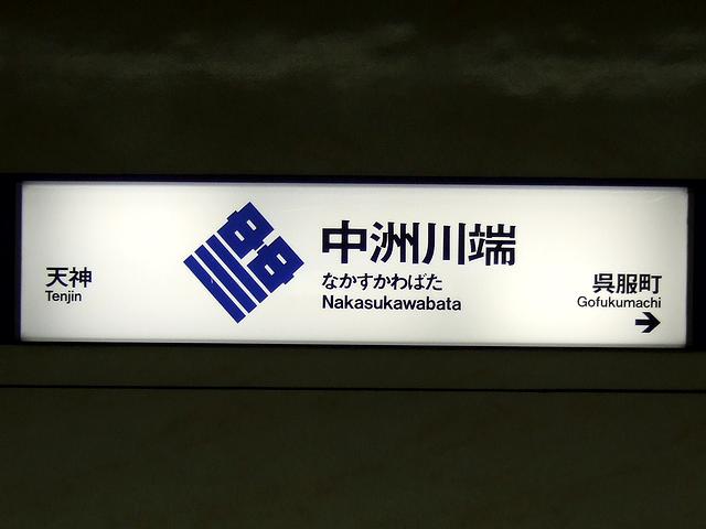 【福岡市地下鉄中洲川端駅の駅名標】