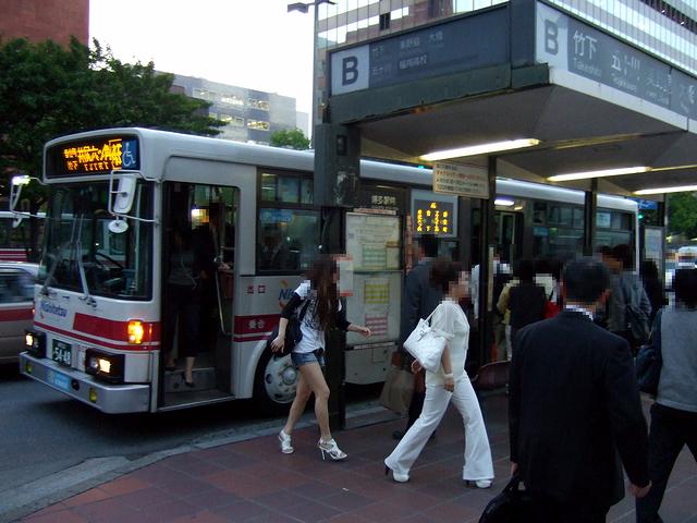 【博多駅前に到着した路線バス】