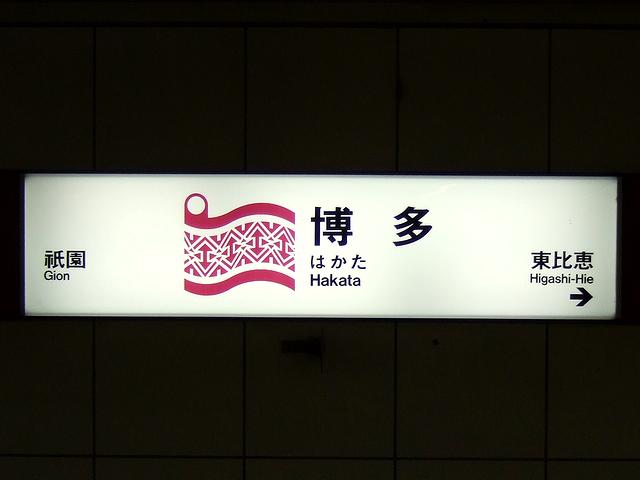【福岡市地下鉄博多駅の駅名標】