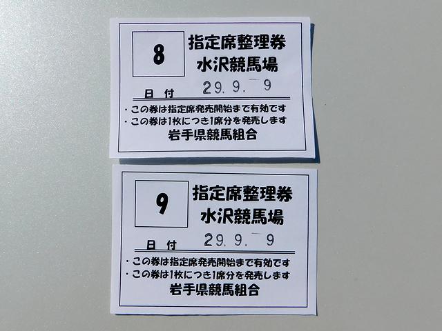 自宅から約330kmを走って、水沢競馬場には午前9時15分頃到着し、今回も前回同様、正門に一番近い民間駐車場(1日)に駐車。既に午前9時から、指定席の整理券が配布開始されていたので早速ゲット。そして午前9時50分に発売開始となり、午前10時に開門となりました。