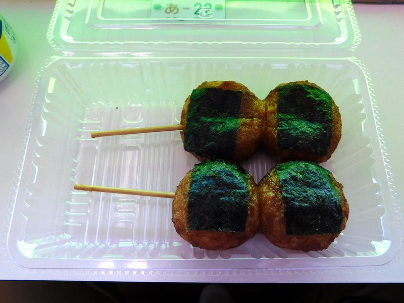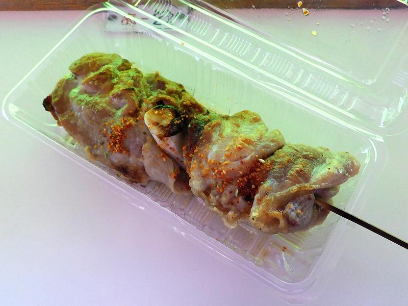 なので今回は、酒のつまみに(ジャンボ)ヤキトリを。唐辛子はお店のお姉さんが掛ける前に有無を訊いてくれますので。で、タイミング良く焼きたてを買う事が出来たのですが、香ばしさが段違いですね。塩もしっかりと効き、ビール、そして後述の缶チューハイがとても進みました。ちなみに、お値段は400円か450円だったかと思うのですが、生憎メモ取ったり写真に残すのをうっかり失念してしまいまして…。
