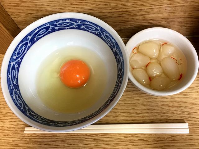 生玉子(那須御養卵) 50円、岩下のピリ辛らっきょう 100円(現金)