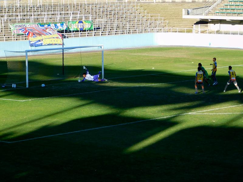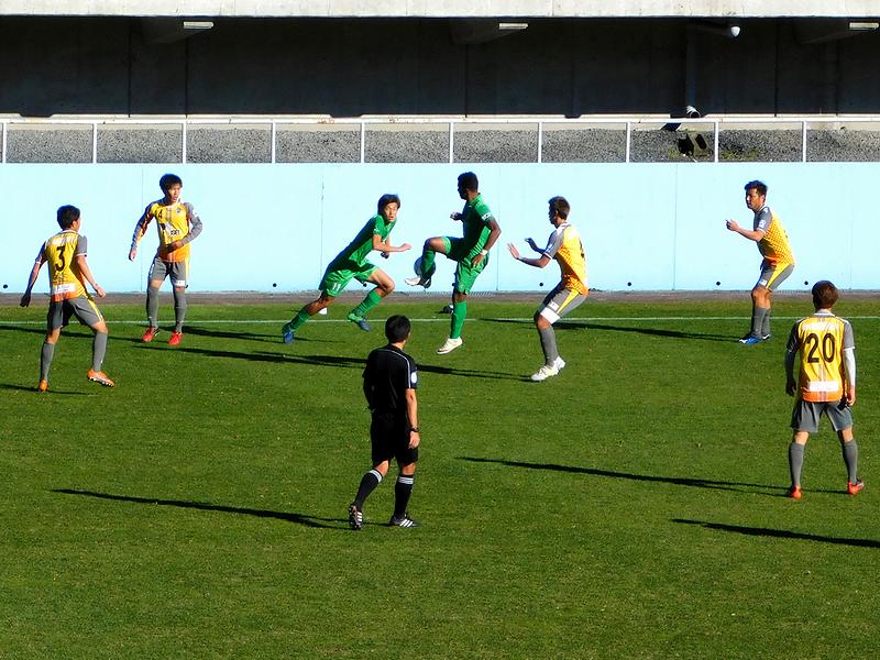 その試合ですが、素人の印象としては、清水エスパルスでの監督経験もあるゼムノビッチが率い、選手も元川崎フロンターレのレナチーニョ、U-21ガーナ代表経験のあるマイケル・タビアン擁する市原が序盤から優勢に見え、特にFWのレナチーニョ(34)などは、いつの間にか相手ペナルティエリアに入り込んでいて、かなり怖いプレーヤーという印象。一方、鈴鹿もレベルが高いといわれる東海地区で優勝しただけあり、そう簡単に得点を許さないという感じで。で、スコアレスのまま前半が終了し、後半18分。相手の一瞬の隙を突き、前述のレナチーニョが先制ゴール。それが決勝点となり、1-0で市原が勝利しました。この結果、市原は勝点を6に伸ばしグループA単独首位となり、一方鈴鹿、そして先の試合で敗戦した松江の1次ラウンド敗退が決定しました。
