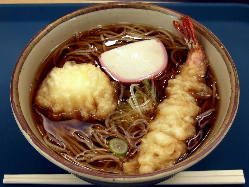 かけそば 350円 + 半熟たまご天 100円 + えび天 150円