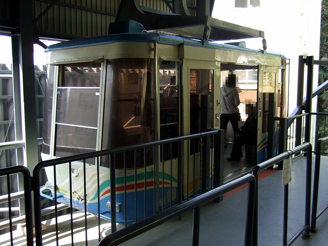 ちなみに、この松山城のロープウェイですが、調べたところによると、昭和30年に設置の愛媛県内でも草分け的存在で、麓の東雲口と松山城本丸がある勝山(城山)8合目にある長者ヶ原(ちょうじゃがなる)を約3分で結ぶとのこと。定員は50名との事ですが、車内のプレートには「定員51名」と書いてあり、どうやらその1名分は、古風な衣装を着たガイドさんの分のようです。