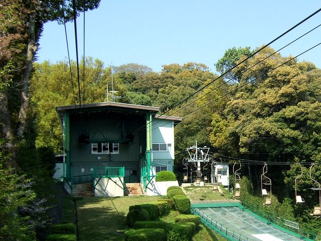 そこで観覧券とロープウェイ・リフトの往復乗車券がセットになったチケットを購入。面白いことに、松山城には登城のためのロープウェイとリフトが両方があって、それらが併走しているそうなのですが、とりあえず、行きはロープウェイ、帰りはリフトを利用することにして、ロープウェイ乗り場へ向かいました。