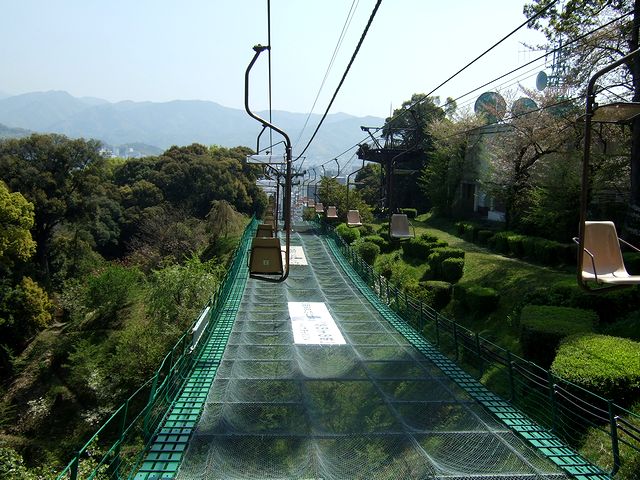前述のとおり、帰りはリフトで。ちなみにこのリフト、昭和41年の設置で、87個の椅子があり、所用時間は約6分とのこと。ロープウェイの方が先に出来てたんですね。